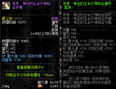 | 40 | 圣物 :荣耀的生命女神的铂金护腿 | *Lv39~46普通地下城怪物掉落 |