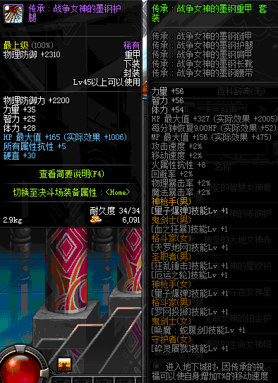 | 45 | 圣物 :战争女神的墨钢护腿 | *Lv45~51普通地下城怪物掉落 |
