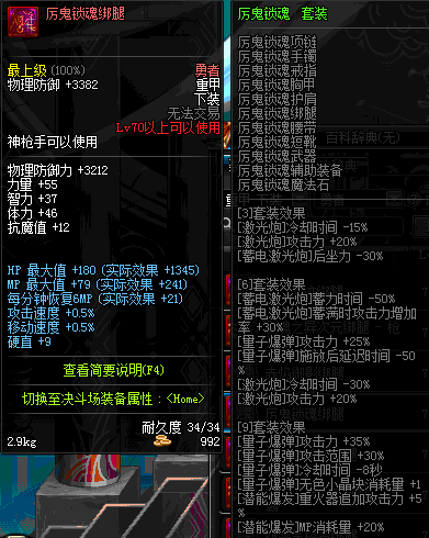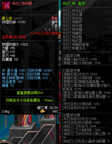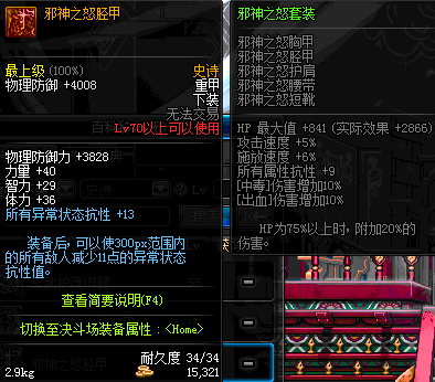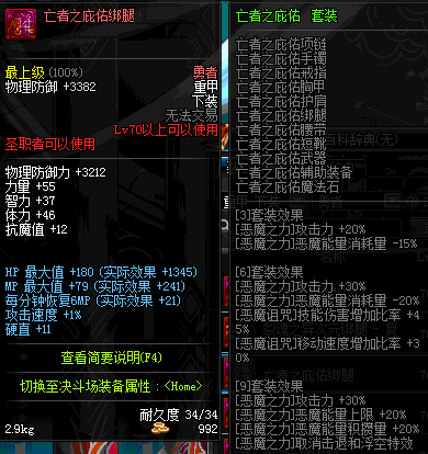 | 70 | 邪神之怒胫甲 | *Lv69~76深渊地下城怪物掉落 | 邪神之怒套装 | |