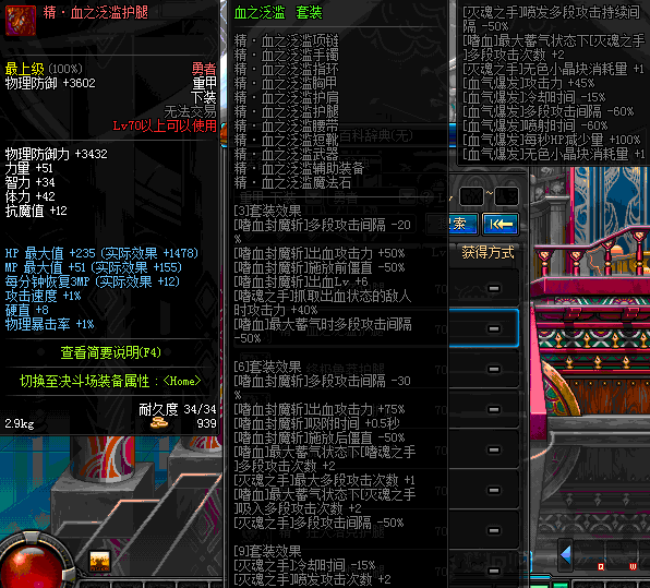 | 50 | 无头骑士的幽魂腿甲 | *无头骑士 掉落(暮色之城) *在NPC敏泰的物品店购买(阿拉德陨石×174) |