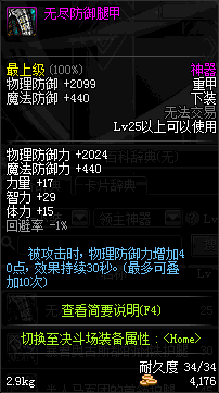 | 25 | 无尽防御腿甲 | *皇后克拉拉 掉落(绝望的棋局) *在NPC阿尔伯特·伯恩斯坦的物品店购买(阿拉德陨石×37) |