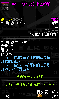 | 45 | 牛头王萨乌塔的血饮护腿 | *牛头王萨乌塔 掉落(冰刺庭院) *在NPC敏泰的物品店购买(阿拉德陨石×147) |