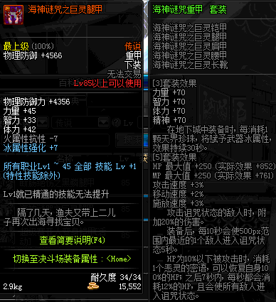 | 85 | 海神谜咒之巨灵腿甲 | *昨日之巴斯顿 掉落 (在远古地下城里出没。) *从NPC鲁特的物品店出售的[海神谜咒防具礼盒]中获得 *船长鲁特 出售 (深海诅咒 : 解咒法×60) |