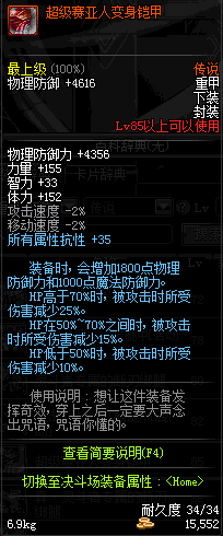 | 85 | 超级赛亚人变身铠甲 | *牛头械王 掉落(魂:比尔马克帝国试验场 6图) *设计图(魂:比尔马克帝国试验场 登场的NPC加百利 出售) |