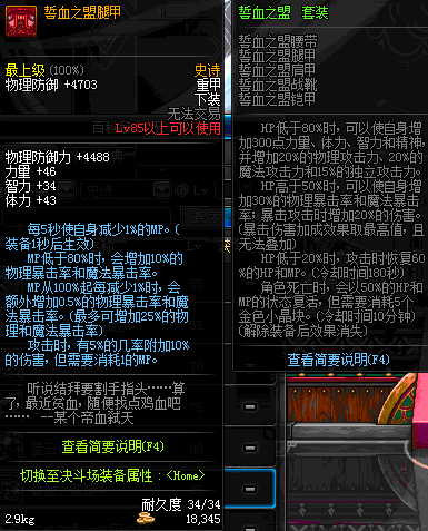| 85 | 誓血之盟腿甲 | *Lv84~91深渊地下城怪物掉落 | 誓血之盟 套装 | |