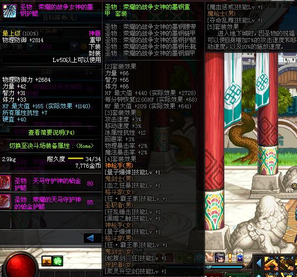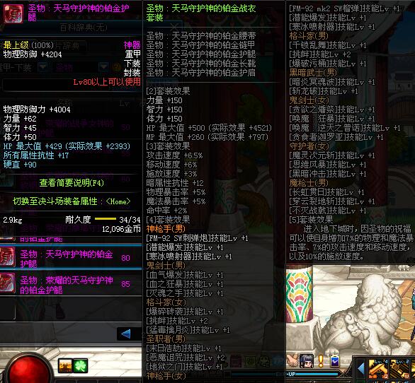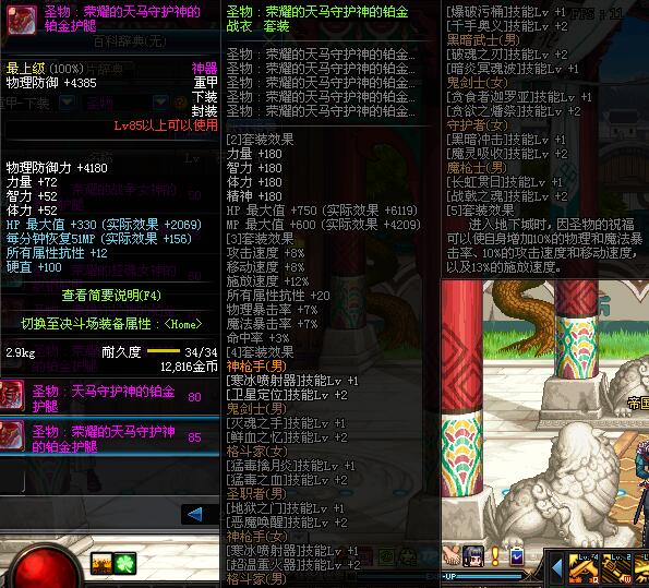 | 80 | 圣物 :天马守护神的铂金护腿 | *Lv80~86普通地下城怪物掉落 | ||