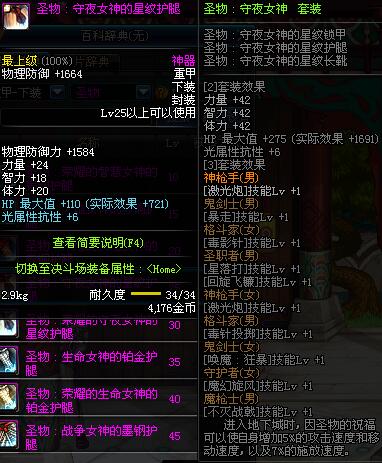 | 25 | 圣物 :守夜女神的星纹护腿 | *Lv24~31普通地下城怪物掉落 | ||