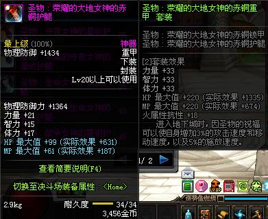 | 20 | 圣物 :荣耀的大地女神的赤铜护腿 | *Lv19~26普通地下城怪物掉落 | ||