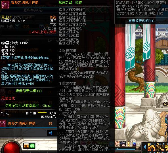 | 85 | 瘟疫之源獠牙护腿 | *昨日之巴斯顿 掉落 (在远古地下城里出没。) *从NPC鲁特的物品店出售的[瘟疫之源防具礼盒]中获得 |
