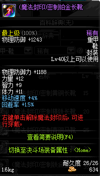 | 15 | (魔法封印)密制黄铜长靴 | *Lv13~21普通地下城怪物掉落 *完成[[魔法封印防具]天才武道家的试炼(3/3)]任务 *使用Lv13~21怪物掉落的设计图进行制作 |