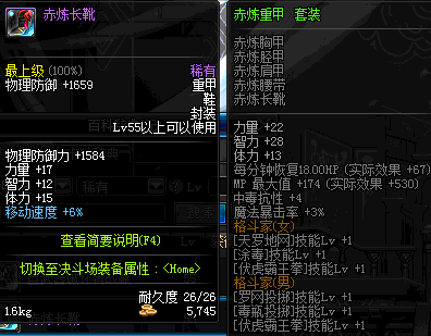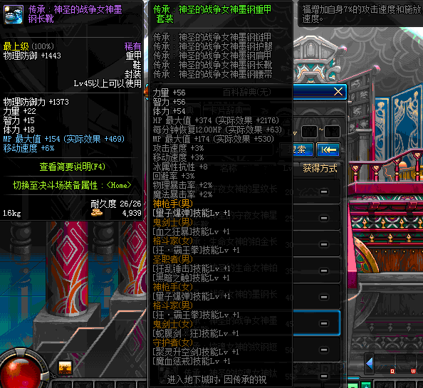 | 45 | 圣物 :战争女神的墨钢长靴 | *Lv45~51普通地下城怪物掉落 |