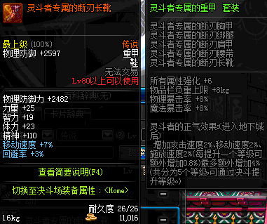 | 80 | 圣物 :天马守护神的铂金长靴 | *Lv80~86普通地下城怪物掉落 | ||