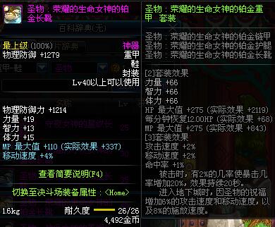 | 40 | 圣物 :荣耀的生命女神的铂金长靴 | *Lv39~46普通地下城怪物掉落 |