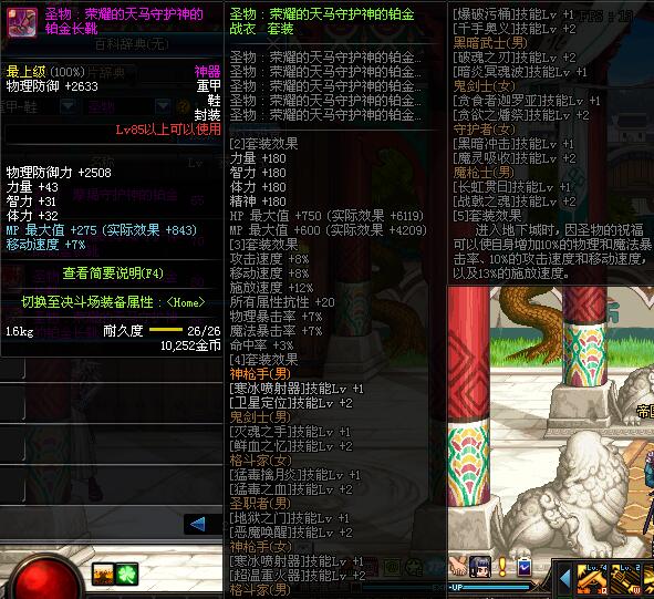 | 85 | 圣物 :荣耀的天马守护神的铂金长靴 | *Lv85~91普通地下城怪物掉落 | ||