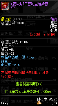| 30 | 暴君奥古斯都的钢铁腰带 | *暴君奥古斯都 掉落(暴君的祭坛) *在NPC克伦特的物品店购买(阿拉德陨石×64) |