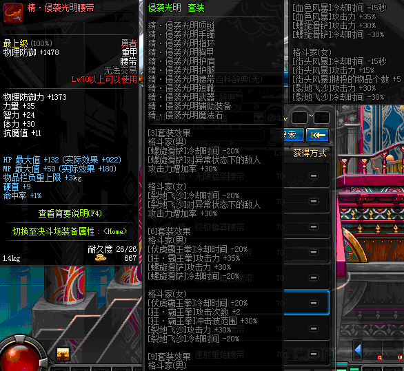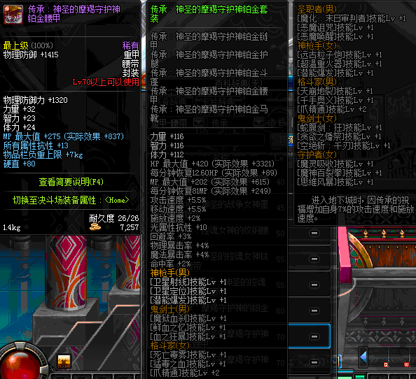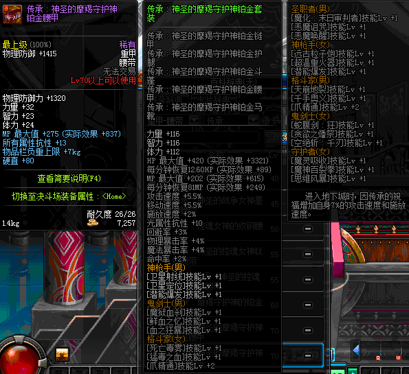 | 70 | 圣物 :荣耀的摩羯守护神的铂金腰带 | *Lv70~76普通地下城怪物掉落 |