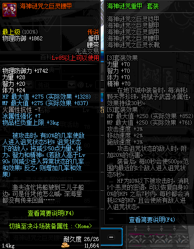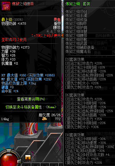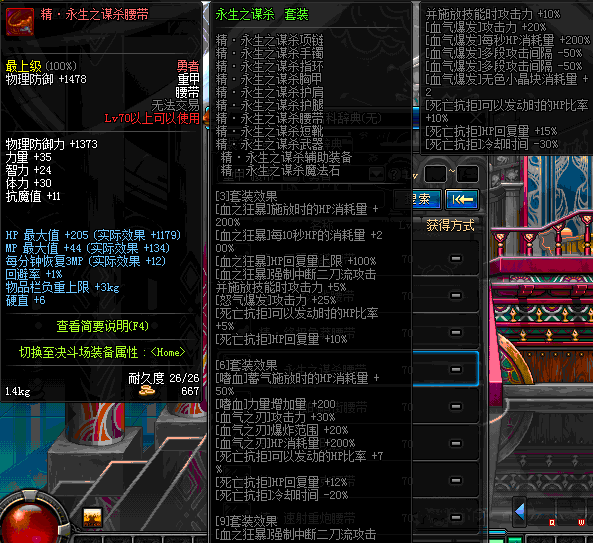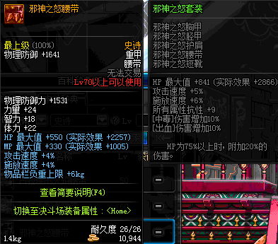 | 70 | 邪神之怒腰带 | *Lv69~76深渊地下城怪物掉落 | 邪神之怒套装 | |