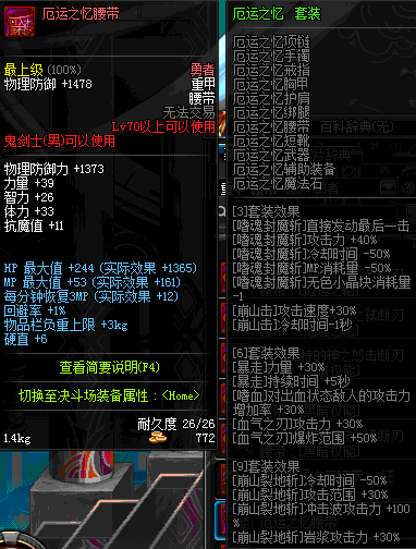 | 辅助装备: | 全职业 鬼剑士 女鬼剑 女格斗 男格斗 神枪手 女枪手 魔法师 男法师 圣职者 暗夜使者 守护者 |