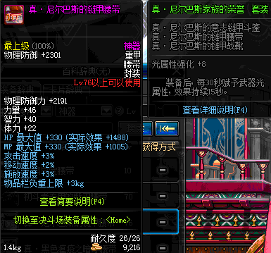 | 76 | 真 · 尼尔巴斯的链甲腰带 | *设计图(70LV以上普通地下城 登场的NPC加百利 出售) *尼尔巴斯的链甲腰带 → 用远古神器装备进化书升级(NPC船长鲁特 出售) |