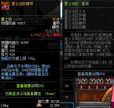 | 80 | 星云迷踪腰带 | *Lv79~86深渊地下城怪物掉落 | 星云迷踪 套装 | |