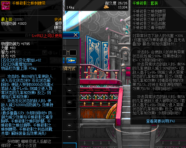 | 85 | 千蛛碎影之蛛刺腰带 | *Lv84~91深渊地下城怪物掉落 | 千蛛碎影 套装 | |
