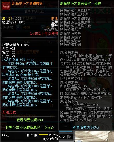 | 85 | 断肠绝伤之黑鳞腰带 | 昨日之巴斯顿 掉落 (在远古地下城里出没。) *从NPC鲁特的物品店出售的[断肠绝伤防具礼盒]中获得 |