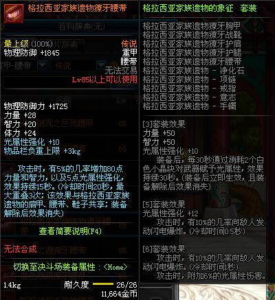 | 85 | 格拉西亚家族遗物獠牙腰带 | *昨日之巴斯顿 掉落 (在远古地下城里出没。) *从NPC鲁特的物品店出售的[格拉西亚家族遗物 - 防具礼盒]中获得 |