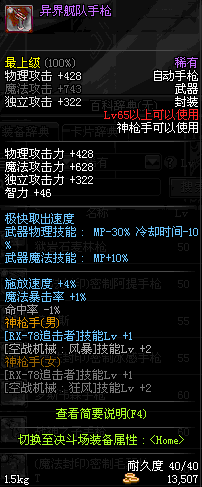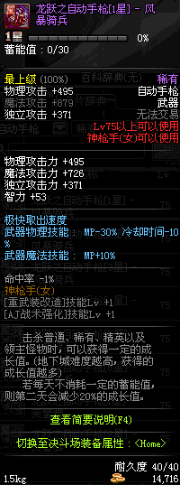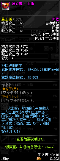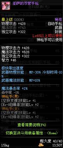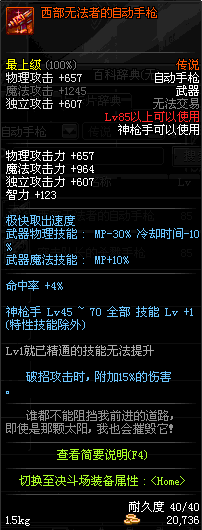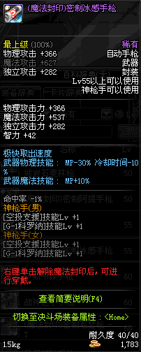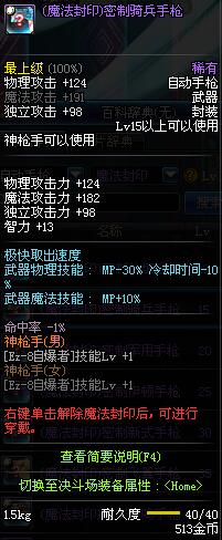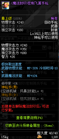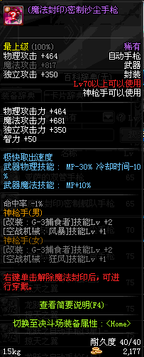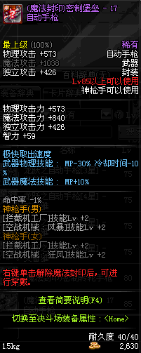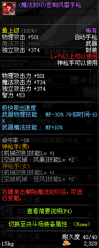 | 15 | (魔法封印)密制骑兵手枪 | *Lv13~21普通地下城怪物掉落 *完成[专职贺礼]任务 |