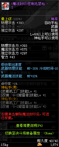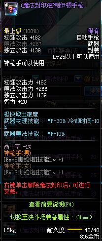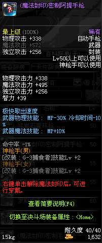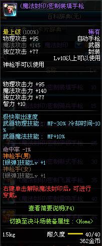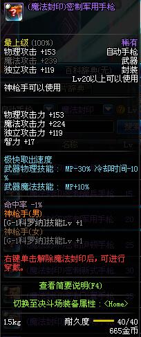 | 10 | (魔法封印)密制装填手枪 | *Lv8~14普通地下城怪物掉落 | ||