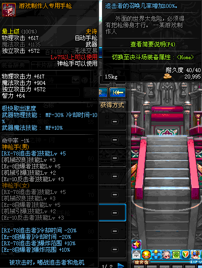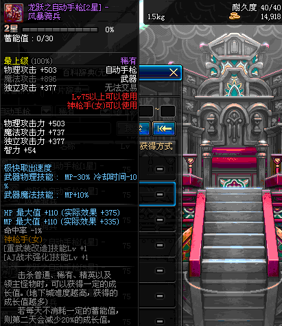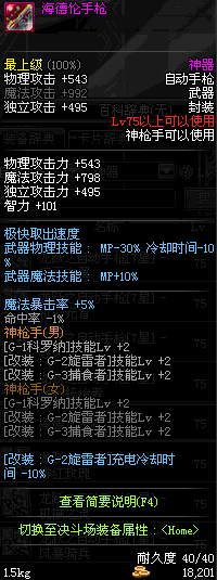 | 75 | 海德伦手枪 | *Lv75~81普通地下城怪物掉落 *在加百利的神秘商店购买 |
