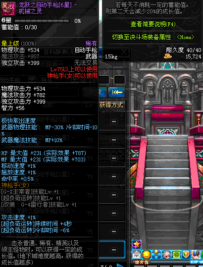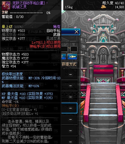 | 75 | 龙跃之自动手枪[6星] – 机械之灵 | *完成二次觉醒任务后可以从NPC小铁柱处获得此道具。 | ||
