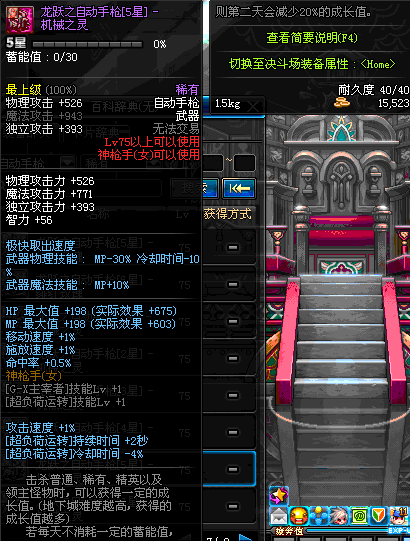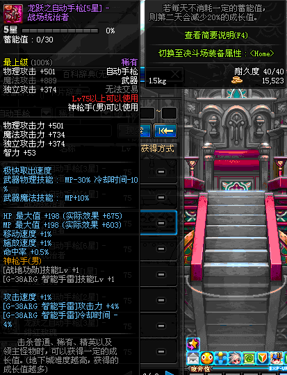 | 75 | 龙跃之自动手枪[5星] – 机械之灵 | *完成二次觉醒任务后可以从NPC小铁柱处获得此道具。 | ||
