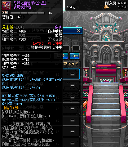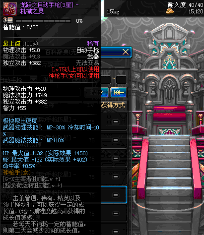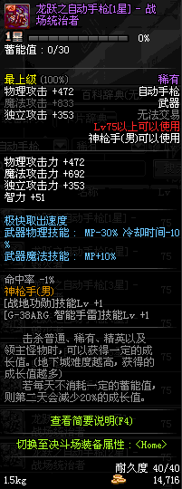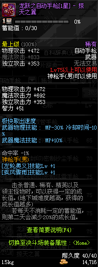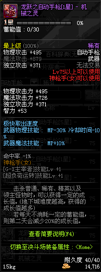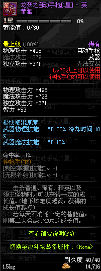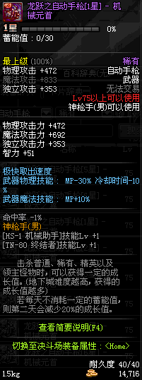 | 75 | 龙跃之自动手枪[4星] – 机械之灵 | *完成二次觉醒任务后可以从NPC小铁柱处获得此道具。 | ||