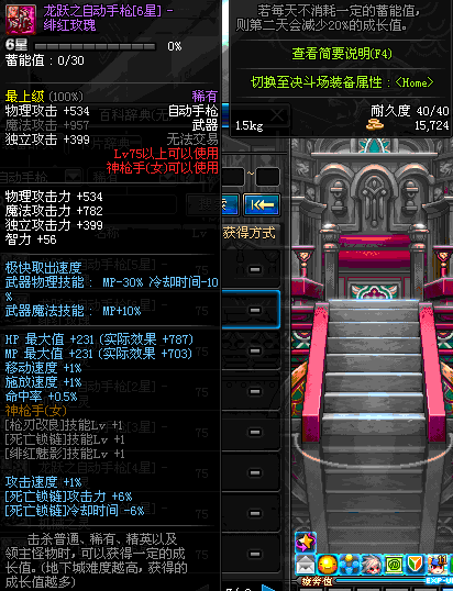 | 75 | 龙跃之自动手枪[2星] – 绯红玫瑰 | *完成二次觉醒任务后可以从NPC小铁柱处获得此道具。 | ||