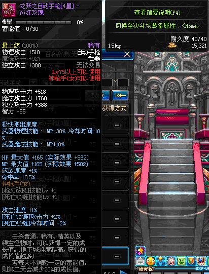 | 75 | 龙跃之自动手枪[4星] – 绯红玫瑰 | *完成二次觉醒任务后可以从NPC小铁柱处获得此道具。 | ||