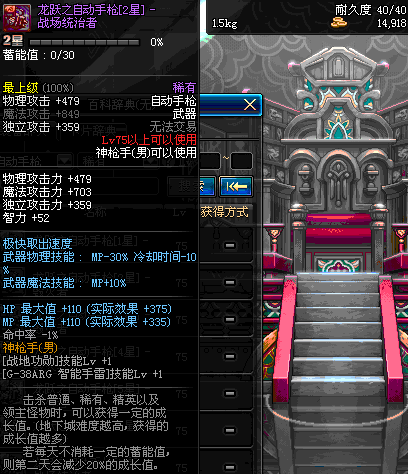| 75 | 龙跃之自动手枪[2星] – 机械之灵 | *完成二次觉醒任务后可以从NPC小铁柱处获得此道具。 | ||