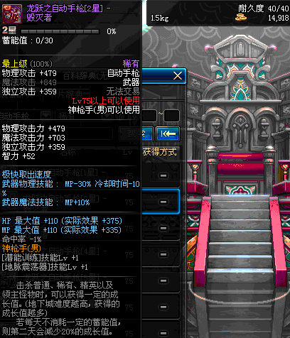 | 75 | 龙跃之自动手枪[2星] – 毁灭者 | *完成二次觉醒任务后可以从NPC小铁柱处获得此道具。 | ||