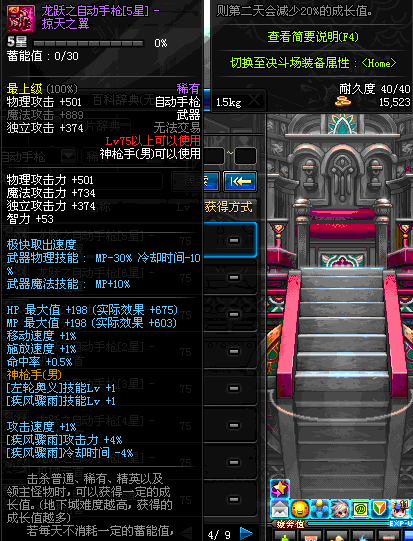 | 75 | 龙跃之自动手枪[5星] – 掠天之翼 | *完成二次觉醒任务后可以从NPC小铁柱处获得此道具。 | ||
