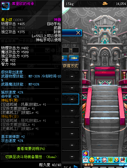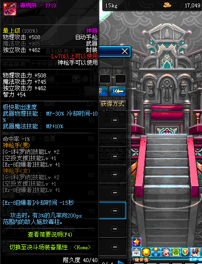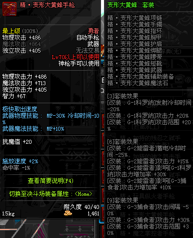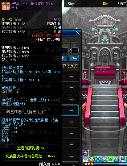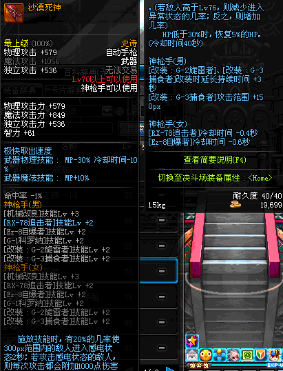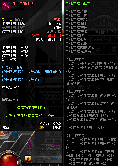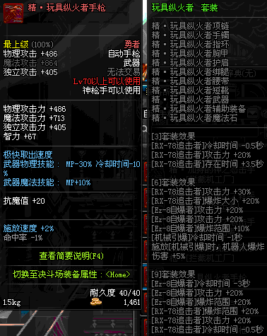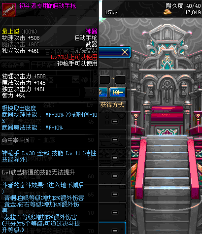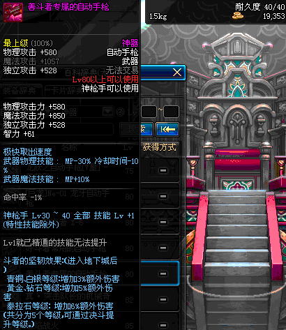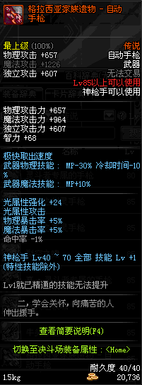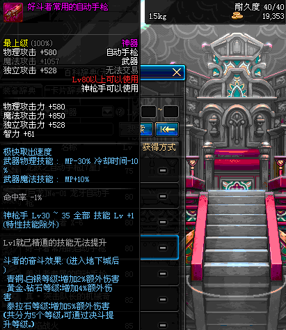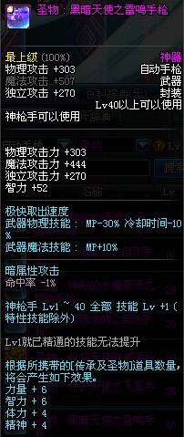 | 40 | 圣物 : 黑暗天使之雷鸣手枪 | *Lv39~46普通地下城怪物掉落 |