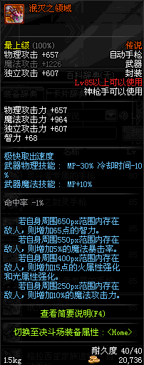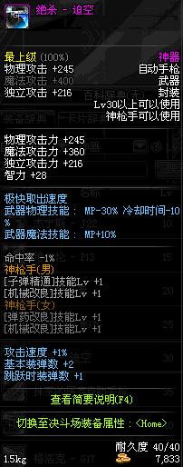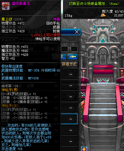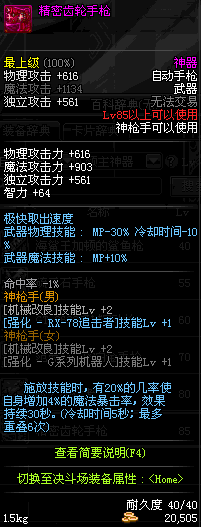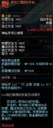 | 85 | (魔法封印)密制堡垒 -×17自动手枪 | *Lv85~91普通地下城怪物掉落 *完成[黑色迷雾]任务 |