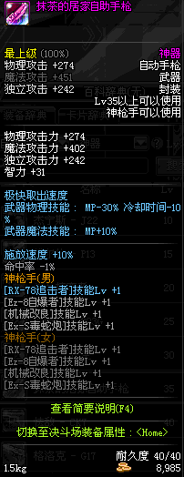 | 35 | 抹茶的居家自助手枪 | *Lv34~41普通地下城怪物掉落 *在加百利的神秘商店购买 |
