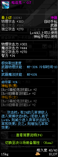 | 40 | 格洛克 - G17 | *Lv39~46普通地下城怪物掉落 *在加百利的神秘商店购买 |