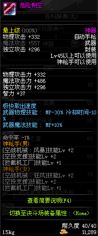 | 45 | 危险制空 | *Lv45~51普通地下城怪物掉落 *在加百利的神秘商店购买 |