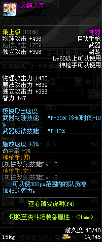 | 60 | 天籁之音 | *Lv58~66普通地下城怪物掉落 *在加百利的神秘商店购买 |
