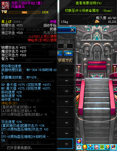 | 75 | (魔法封印)密制风雷手枪 | *Lv75~81普通地下城怪物掉落 *完成[调查紫雾团]任务 *使用Lv75~81怪物掉落的设计图进行制作 |