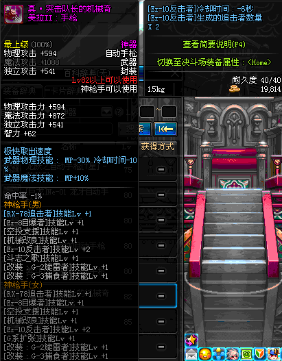 | 82 | 真·突击队长的机械奇美拉Ⅱ:手枪 | *设计图(70LV以上普通地下城 登场的NPC加百利 出售) *突击队长的机械奇美拉Ⅱ:手枪 → 用远古神器装备进化书升级(NPC船长鲁特 出售) |