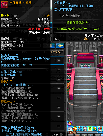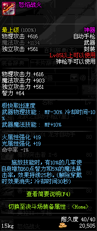 | 85 | 怒焰战火 | *Lv85~91普通地下城怪物掉落 *在加百利的神秘商店购买 |