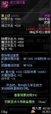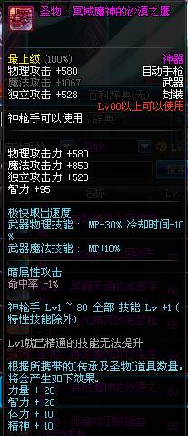 | 80 | 圣物 : 冥域魔神的沙漠之鹰 | *Lv80~86普通地下城怪物掉落 | ||