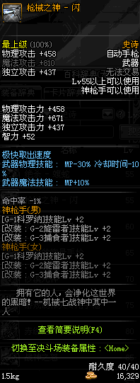| 55 | 枪械之神 - 闪 | *Lv54~61深渊地下城怪物掉落 *在NPC沉默之克雷娅的物品店购买 |