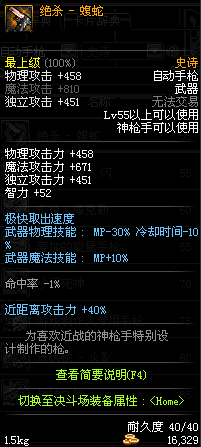 | 55 | 绝杀 - 蝮蛇 | *Lv54~61深渊地下城怪物掉落 *在NPC沉默之克雷娅的物品店购买 |